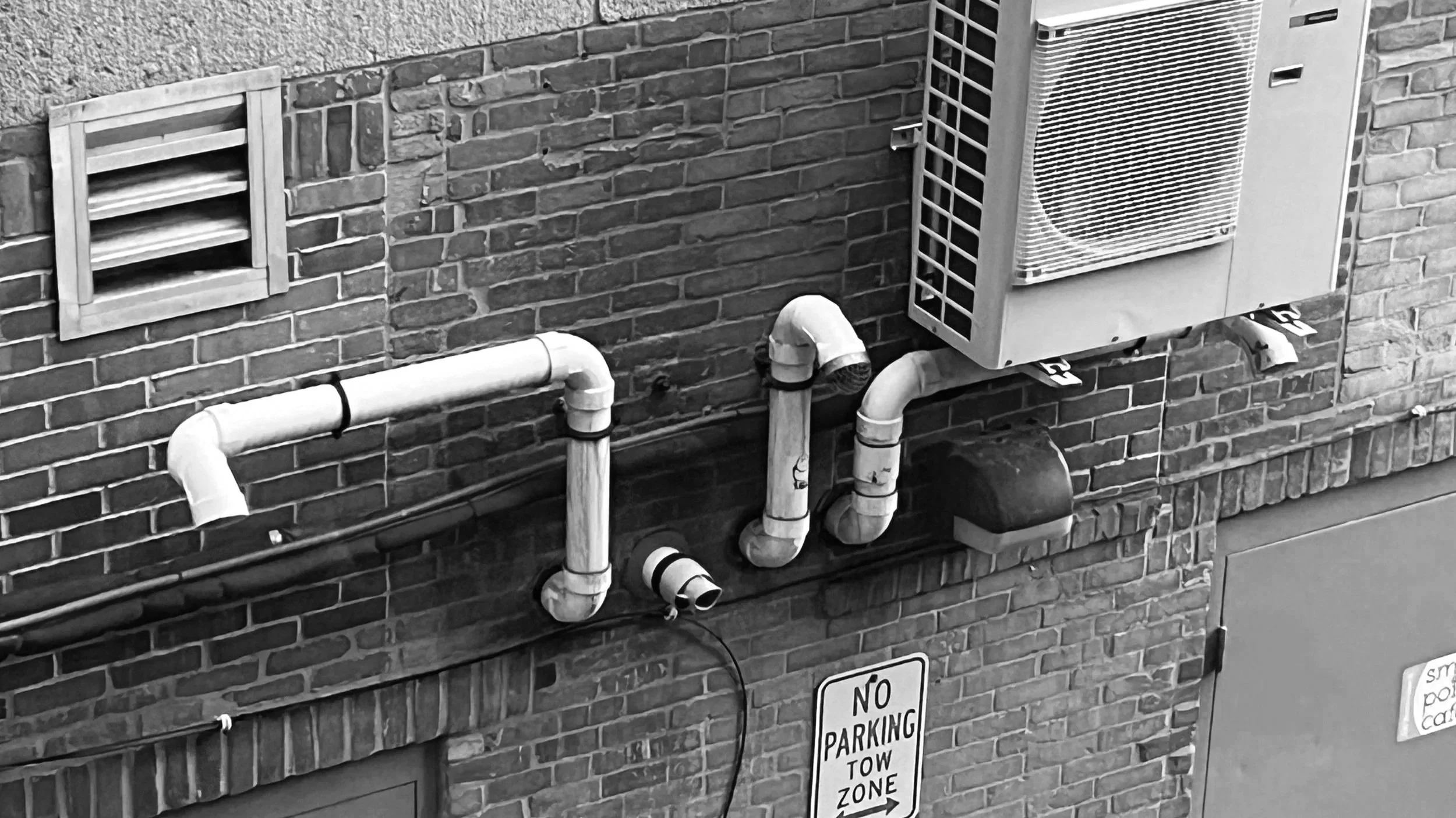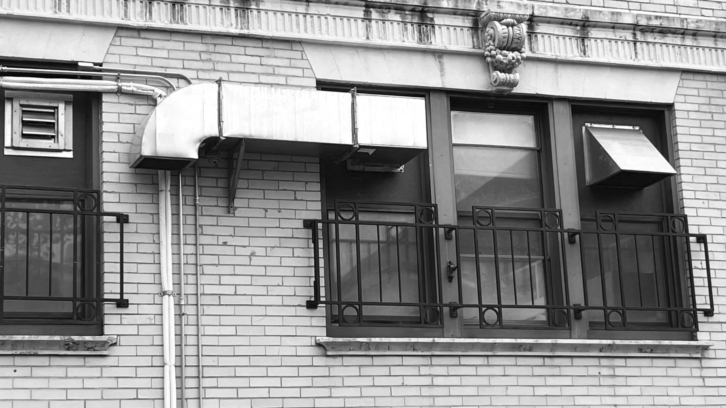 In the fall of 2023, while walking on Brown Mountain, I began to notice the buildings there, particularly the old ones that left a lasting impression on me. Although many buildings still retained their old exteriors, their interiors had changed significantly. For instance, you can still see chimneys on the rooftops, but the atmosphere of the old days is gone, replaced by thick metal pipes or large fan systems exposed on the exterior walls, their humming noise faintly audible from a distance. Additionally, air conditioners mounted on double-hung windows look strikingly out of place and discordant. However, they all serve a similar purpose of keeping the outdoor environment at bay, creating individual pods with artificial climates. These original passages have gradually begun to take on completely different roles, suggesting modern concepts of “comfort” while also giving these relatively eternal man-made structures new possibilities.