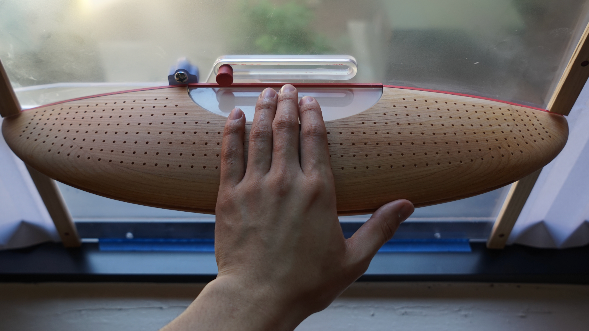 White cedar as a medium and designed its internal structure to form a self-circulating duct. As the wind flows in and out, part of it combines with the scent of the cedar, allowing people to smell the aroma while feeling the wind with their hands. Incorporating glass into the device to directly conduct external temperature, allowing people to intuitively feel changes in outside temperature. This enhances the interactive experience with the environment and enriches sensory communication.