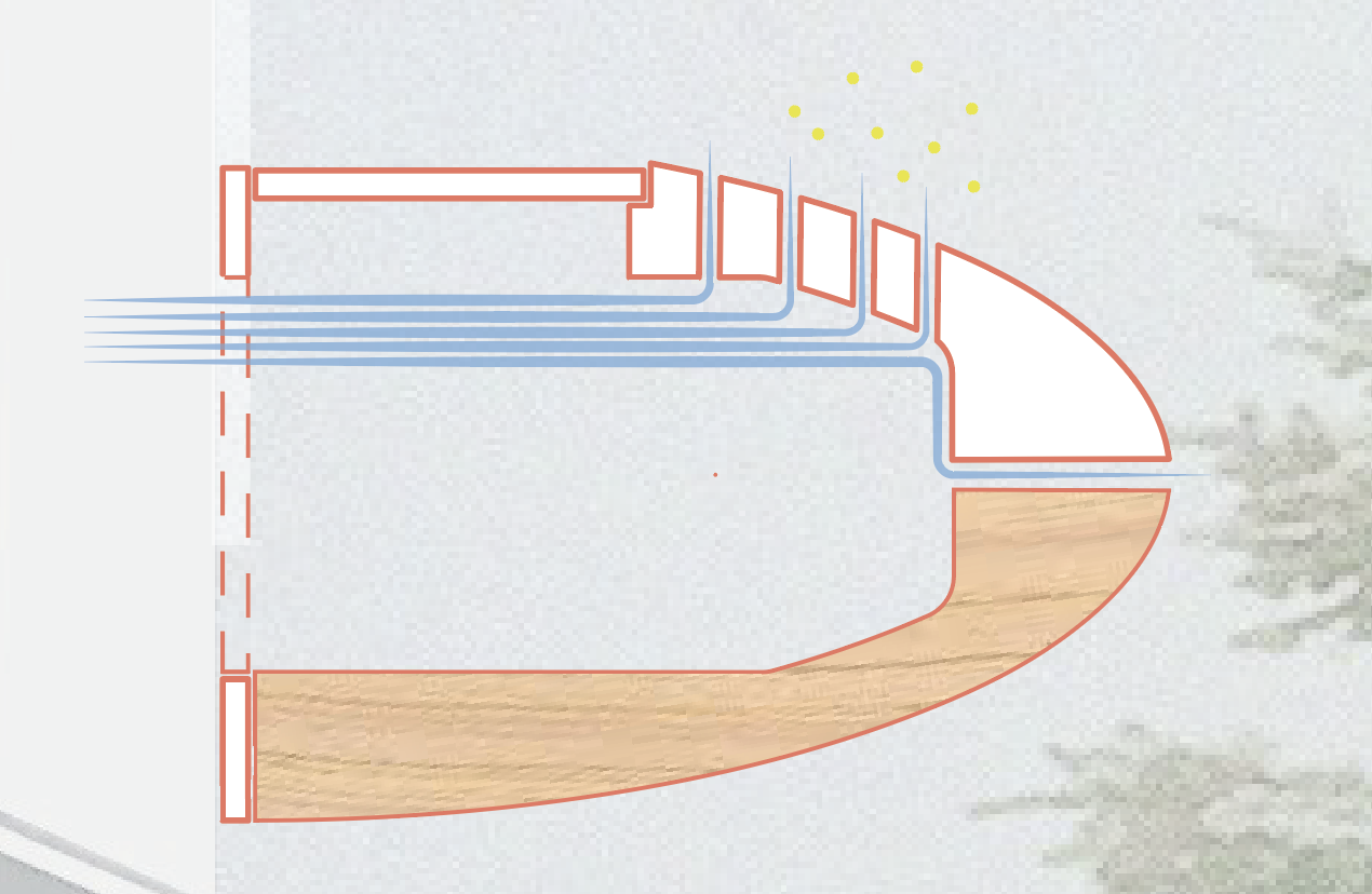 A concept prototype designed for slowing down the speed of wind. It connects to the window through a customized “S” shaped passage under windy weather.